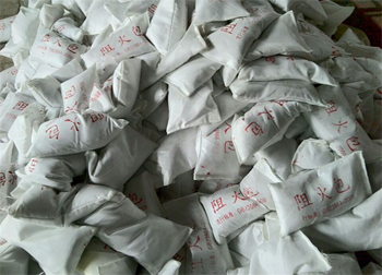 阻火包形狀如小枕頭,外層由經(jīng)過(guò)處理的玻璃纖維布制成,內(nèi)部填充由無(wú)機(jī)不燃材料和特種添加劑組成的混合物。該產(chǎn)品無(wú)毒、無(wú)味、無(wú)腐蝕,耐水、耐油、耐濕熱性、耐凍融循環(huán)性、膨脹特性好,施工簡(jiǎn)便,可隨意拆裝和反復(fù)使用,可根據(jù)用戶(hù)不同的要求壘制成各種形狀的防火墻、防火層、亦可封堵需要作防火處理的孔洞。遇火時(shí),阻火包內(nèi)的物質(zhì)受熱膨脹,結(jié)成蜂窩狀整塊,形成嚴(yán)密的封堵層達(dá)到阻火、隔熱,有效地將火災(zāi)控制在局部范圍之內(nèi),當(dāng)封堵厚度達(dá)到240mm時(shí),耐火極限可達(dá)到180min以上